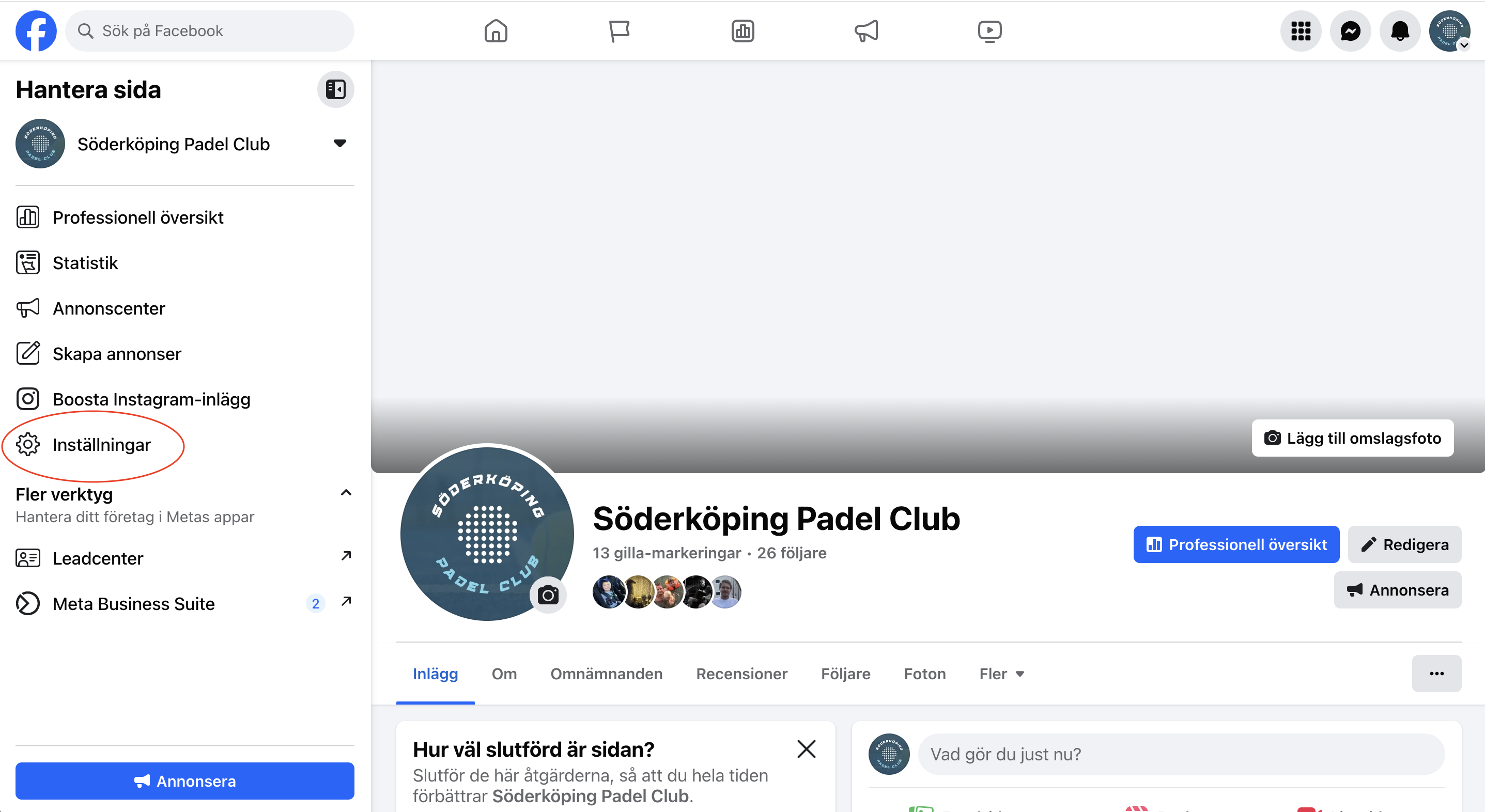 2. Gå till din sida och klicka på Inställningar i menyn till vänster.