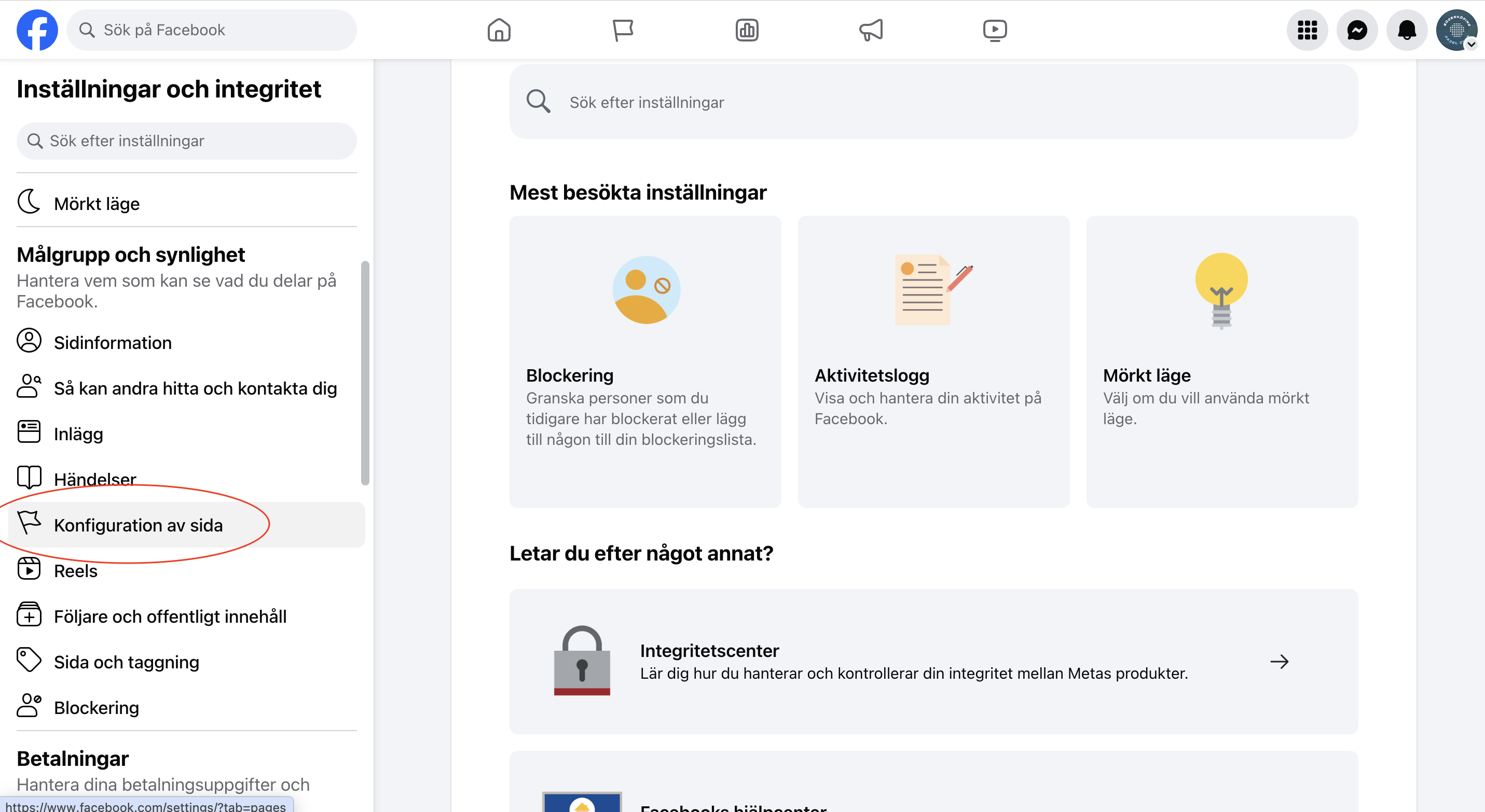 1. Från Flödet klickar du på Sidor i vänstermenyn. Du måste kanske klicka på Visa mer först.