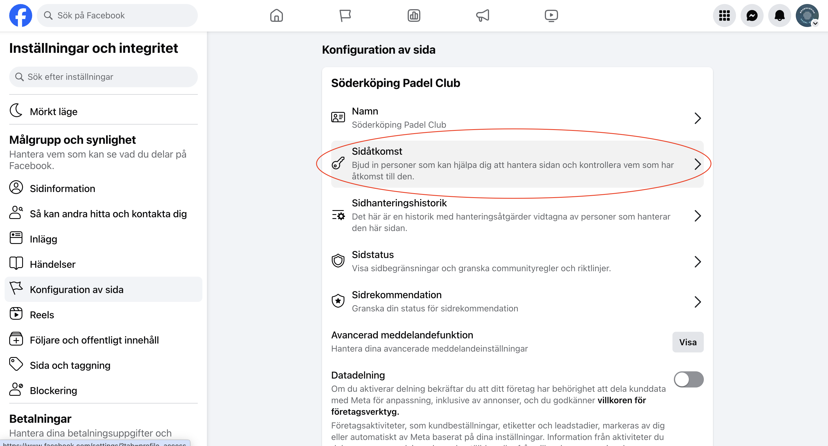 4. Klicka sedan på Sidåtkomst
